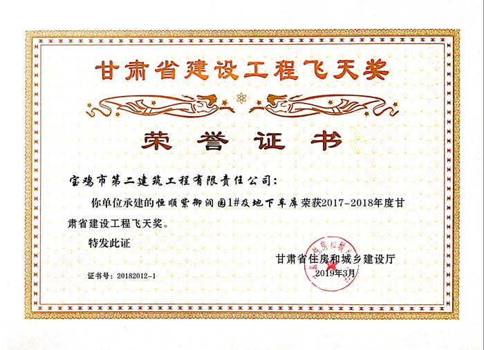 2017-2018年度甘肅省建設(shè)工程飛天獎(jiǎng)(恒順紫御潤(rùn)園1#及地下車(chē)庫(kù))