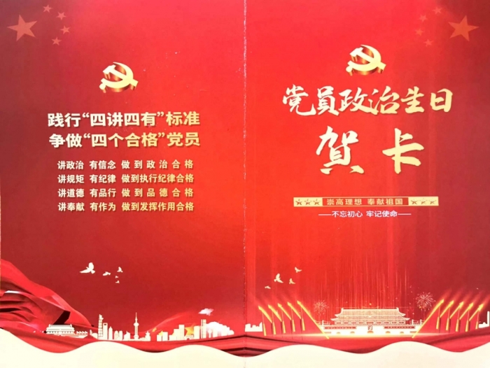 集團公司總部黨支部為黨員集體過政治生日,向每名黨員贈送了政治生日賀卡,號召大家牢記初心使命,履職盡責擔當,充分發(fā)揮好黨員的先鋒模范和帶頭示范作用,砥礪前行,繼續(xù)奮斗,以實際行動迎接黨的二十大勝利召開!