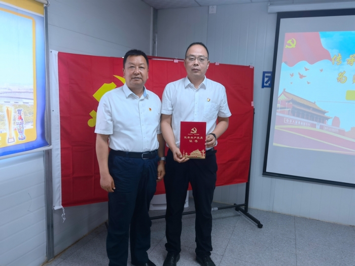 黨委書記為優(yōu)秀共產(chǎn)黨員頒發(fā)榮譽證書。