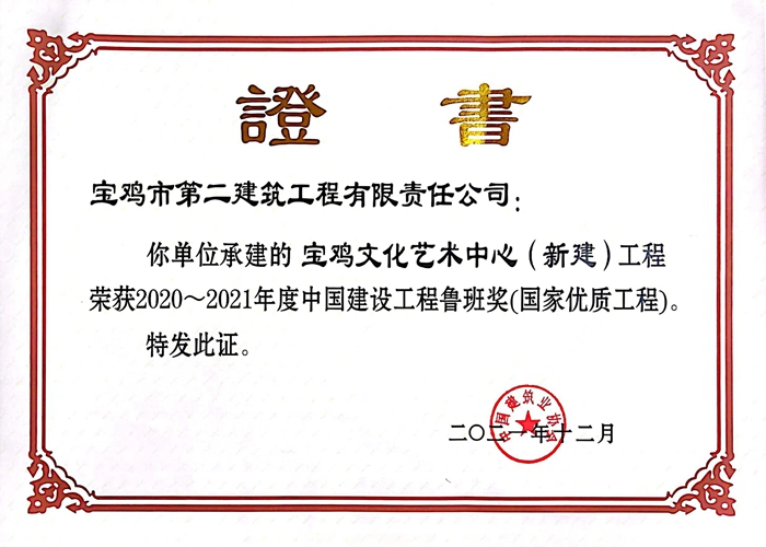 | ?2020~2021?年度中國(guó)建設(shè)工程魯班獎(jiǎng)(寶雞文化藝術(shù)中心(新建)工程) |